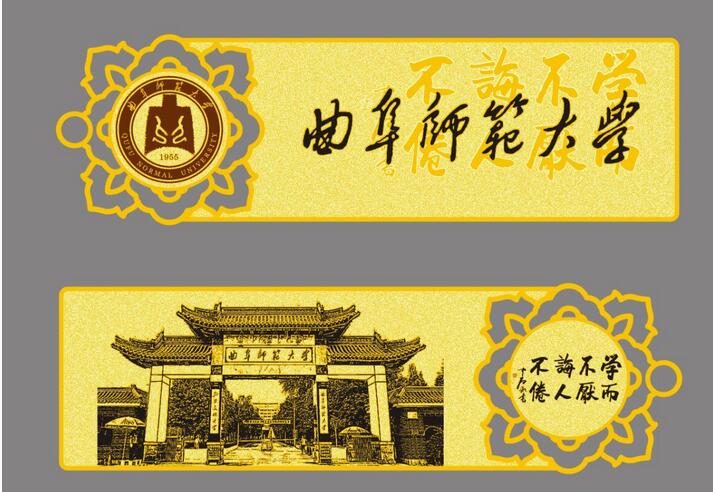这次为曲阜师范大学策划定制的是2枚精美书签,以曲阜大学校徽、校训、校花和标志性建筑大门、孔子画像为设计元素。完美的展现的服务的人文风貌、这样的2枚书签送给毕业生,一定会受到喜爱。